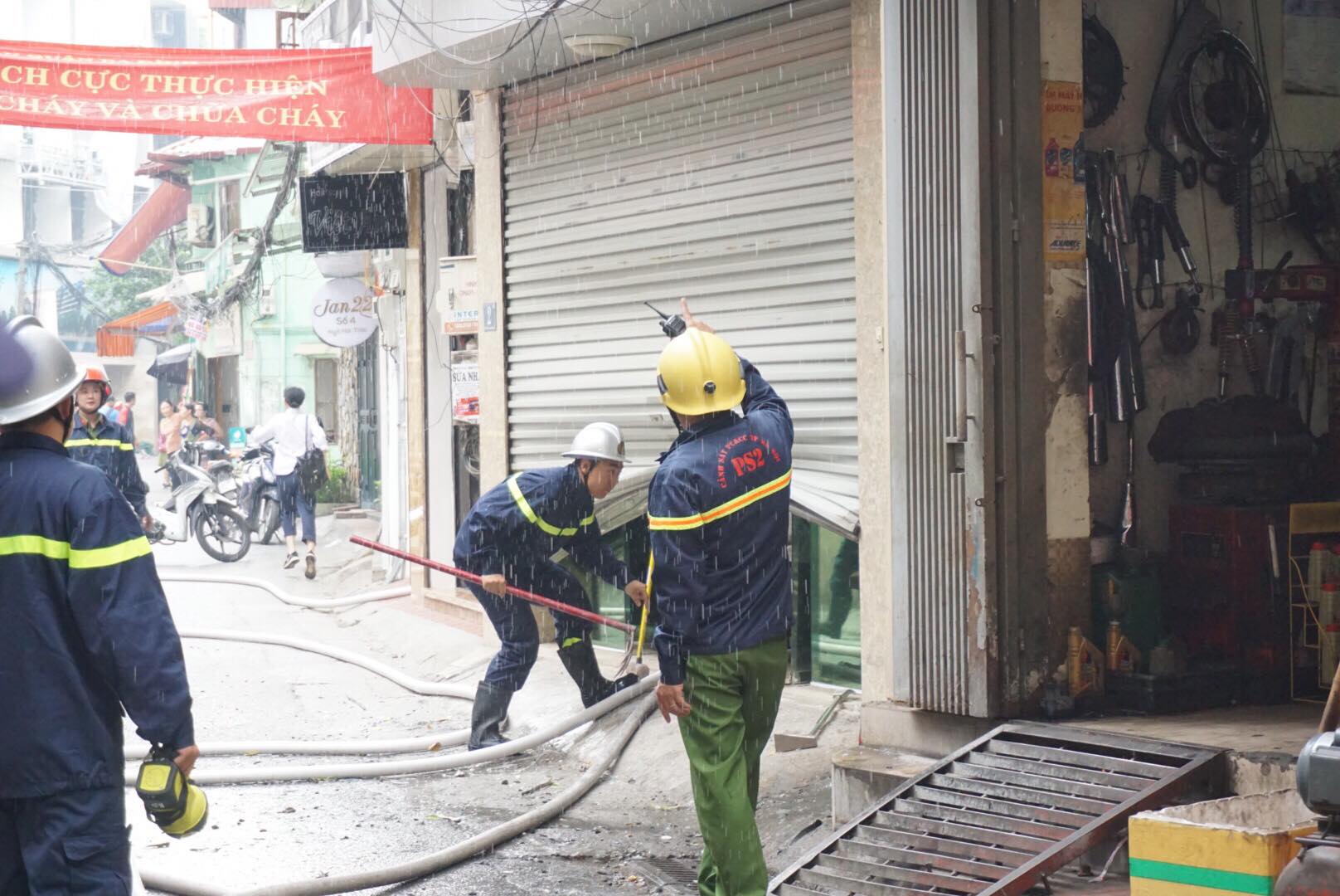 Do khu vực cháy tại tầng 6 khó tiếp cận nên lực lượng cảnh sát đã phải đưa vòi nước từ nhà hàng xóm tiến lên tiếp cận hiện trường. Một mặt nhiều chiến sĩ cảnh sát phá cửa vào nhà dập lửa.