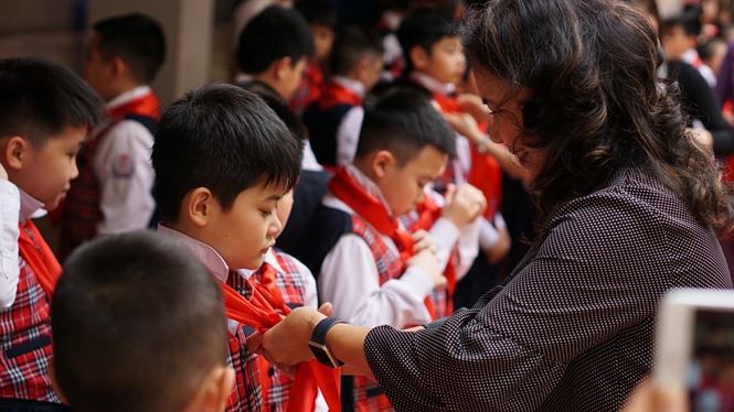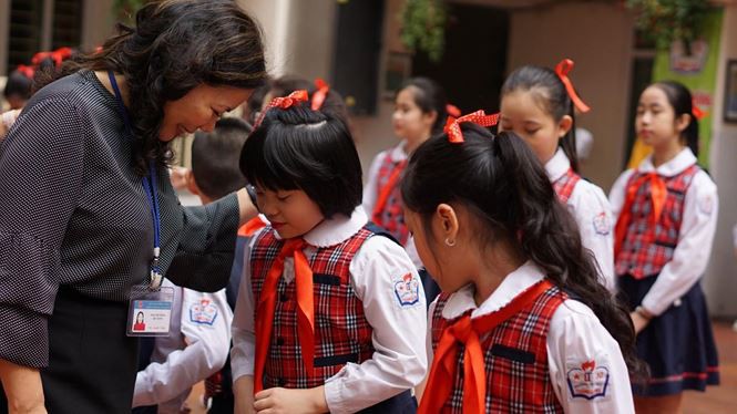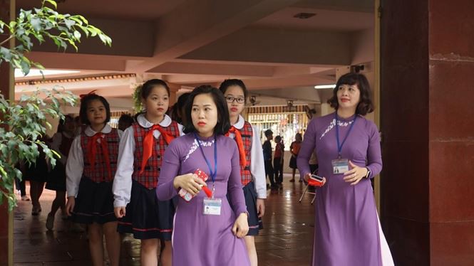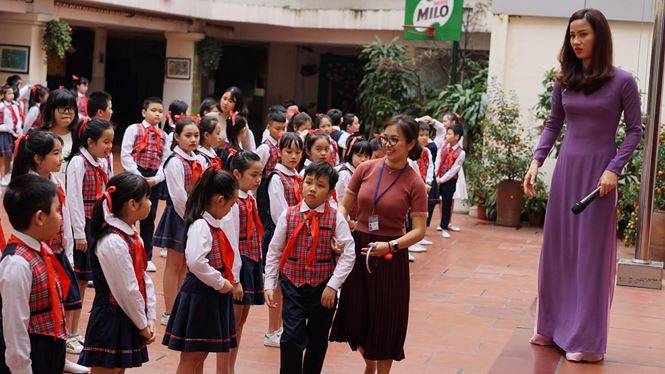 Cô giáo Trần Thu Hồng, Tổng phụ trách trường tiểu học Thăng Long cho biết từ ngày về trường làm việc đã vinh dự đến 10 lần được đưa học sinh tham gia lễ đón các nguyên thủ quốc gia các nước thăm hữu nghị Việt Nam.