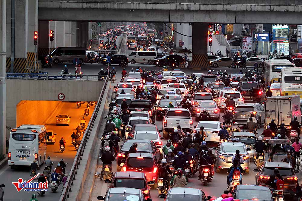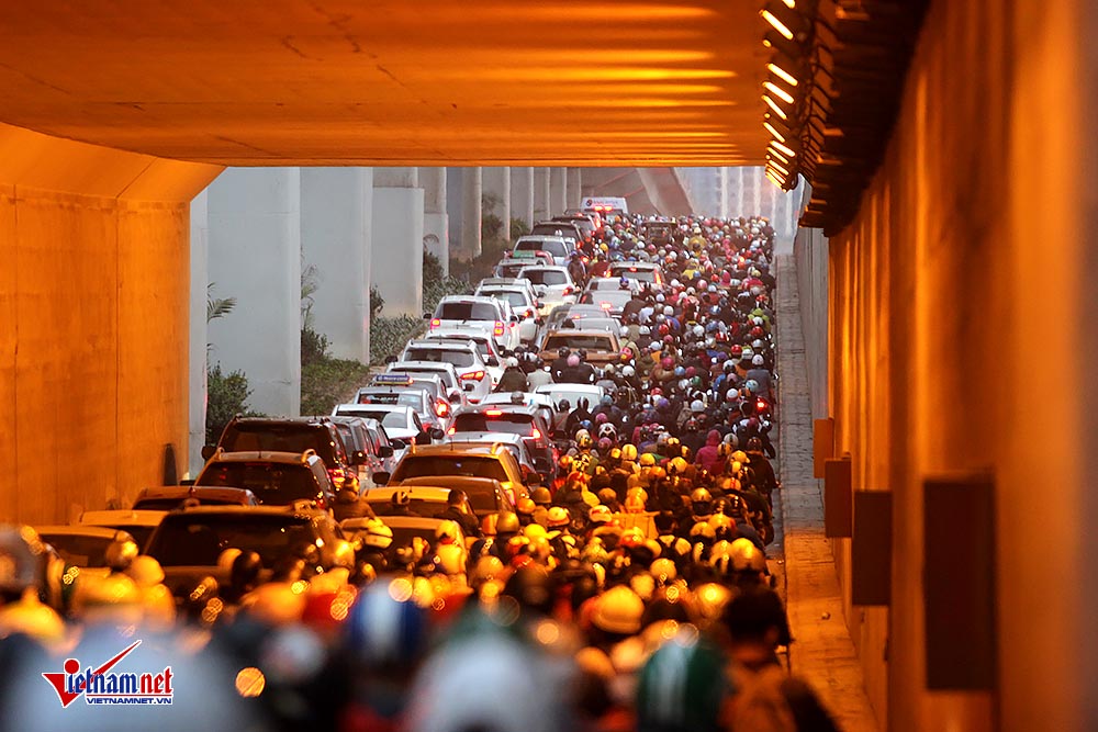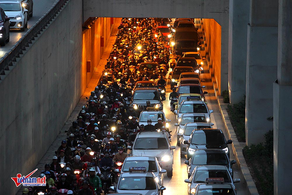 Nhiều phương tiện chôn chân trong hầm Thanh Xuân