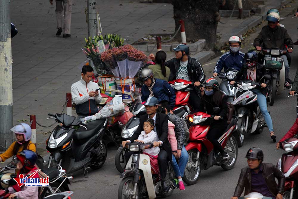 Một số người dừng lại mua hoa khiến giao thông bị ùn ứ
