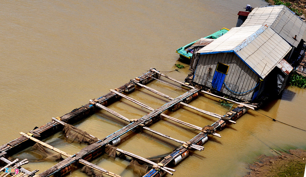 Những chiếc tàu, ghe hàng ngày dùng chở cá bị “bỏ hoang” cùng những lồng bè trống trên sông.