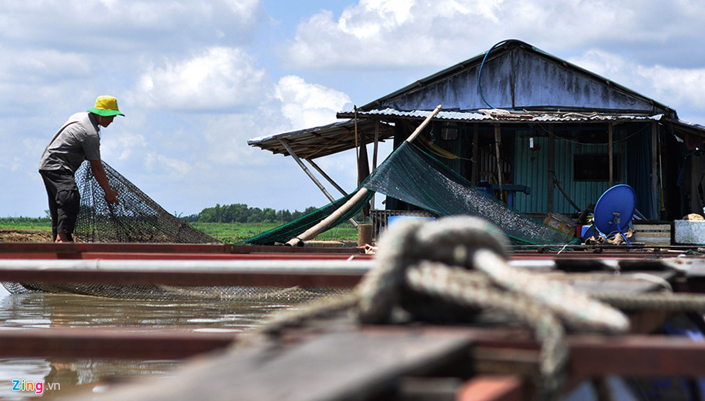 Anh Trần Văn Thiện thu dọn lưới ở các bè nuôi để lên bờ kiếm việc làm. Ngư dân này cho biết tai họa cá chết đã làm gia đình anh trở nên kiệt quệ. “Tôi vừa nuôi vừa nhập cá của các hộ dân về bán lại cho thương lái. Vài ngày trước khi xảy ra 'thảm họa', tôi mua mấy tấn cá của người dân về bè nhốt, để chờ bán lại cho thương lái kiếm lời. Không ngờ sau đó chúng chết sạch, thiệt hại mấy trăm triệu đồng”, ngư dân Thiện nói.