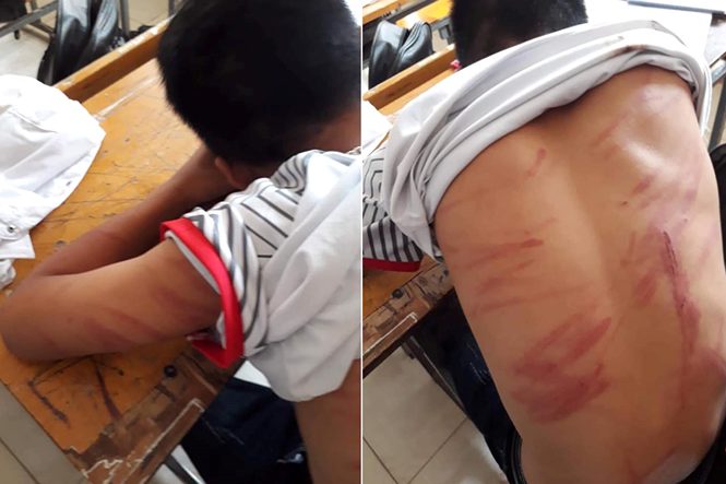 Sau khi được các thầy cô đưa vào phòng y tế nằm và kiểm tra thì tá hỏa khi em này có nhiều vết thương mới và cũ khắp trên cơ thể.