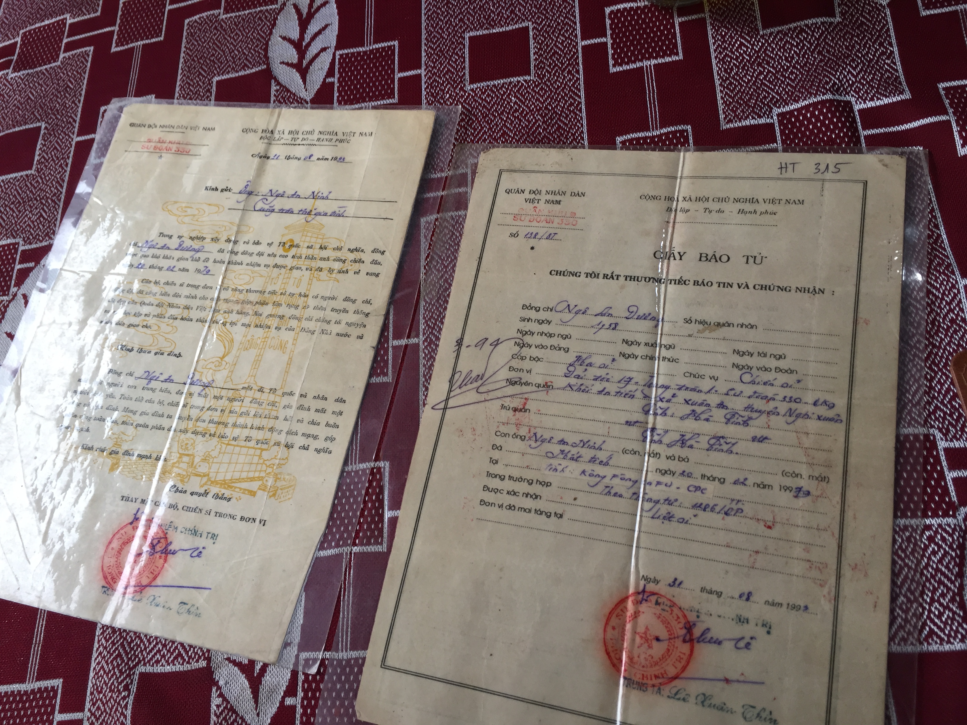 Giấy báo tử của ông Dương