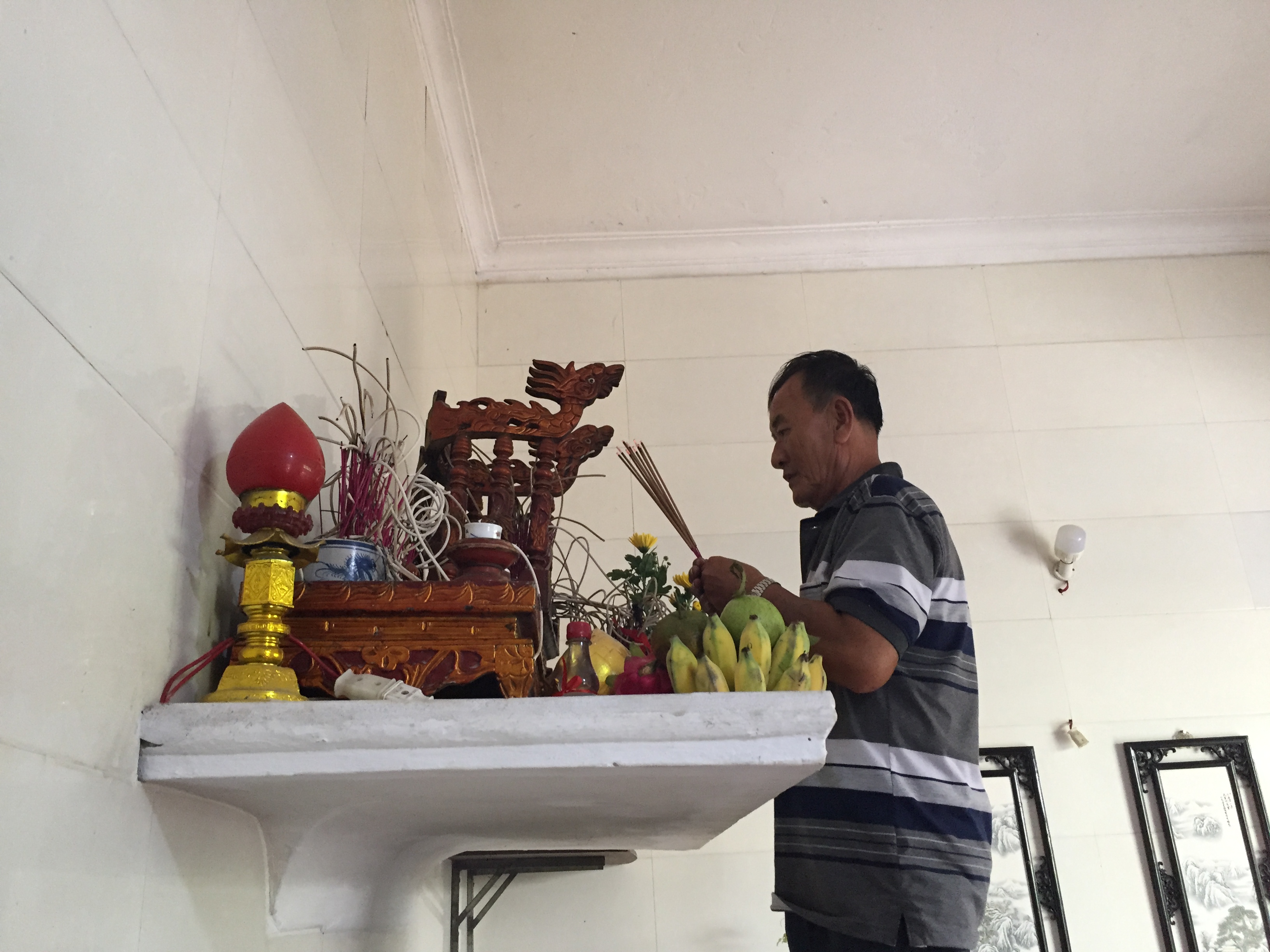 Ông Dương thắp hương cảm tạ tổ tiên phù hộ