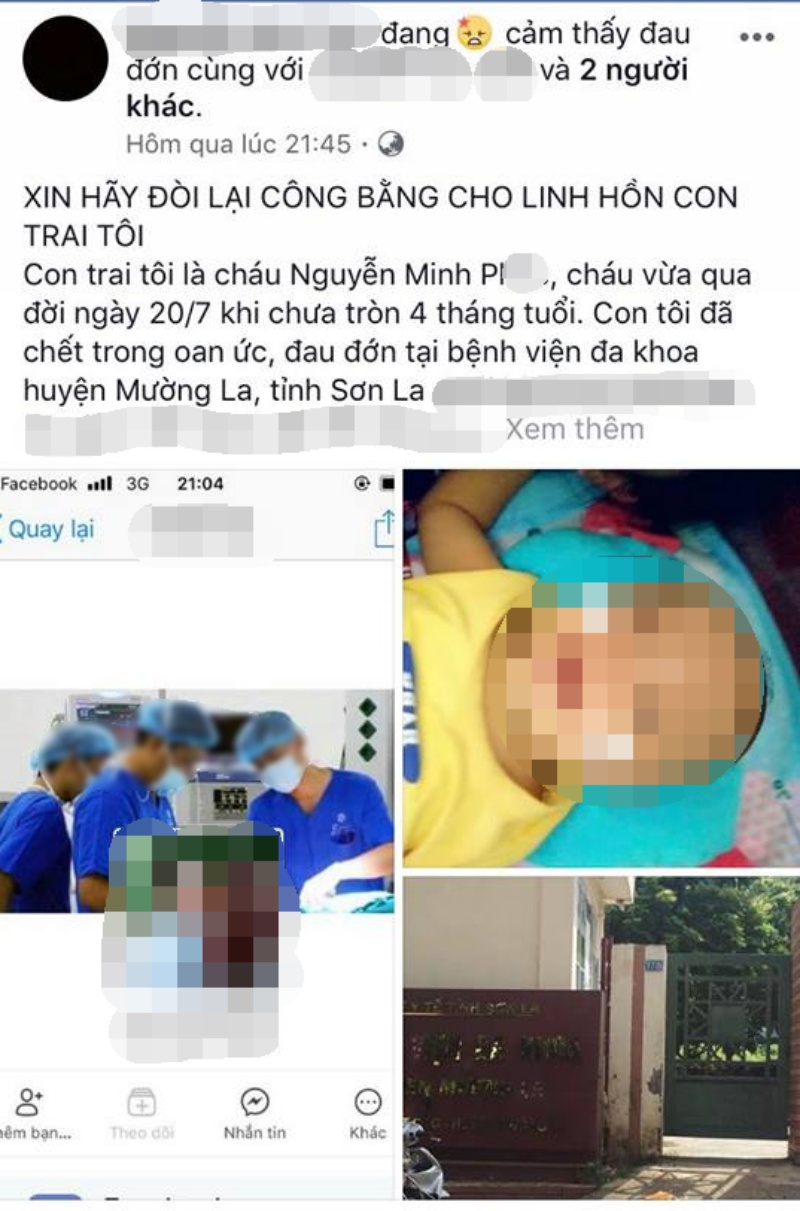 Mới đây, anh Nguyễn Bình Sơn (SN 1987, thị trấn Ít Ong, huyện Mường La, tỉnh Sơn La) đăng tải lên mạng xã hội phản ánh, con của anh là bé N.M.P qua đời ngày 20/7 khi chưa tròn 4 tháng tuổi do sự tắc trách của nhân viên y tế bệnh viện Đa khoa Mường La gây xôn xao dư luận.