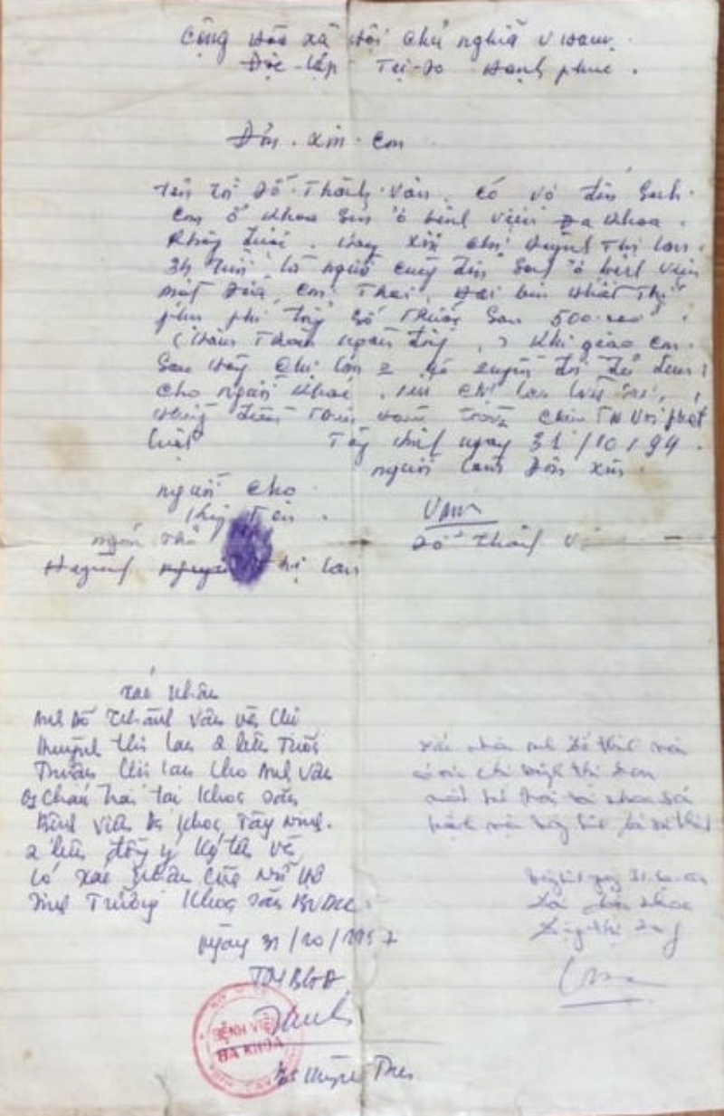 Lá đơn xin con có chữ ký người mẹ ông Chuốt vẫn giữ 25 năm qua.