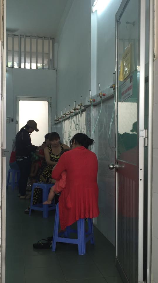 Các bệnh nhi bị ảnh hưởng nhẹ hơn được người nhà chăm sóc tại phòng lưu bệnh nhân.