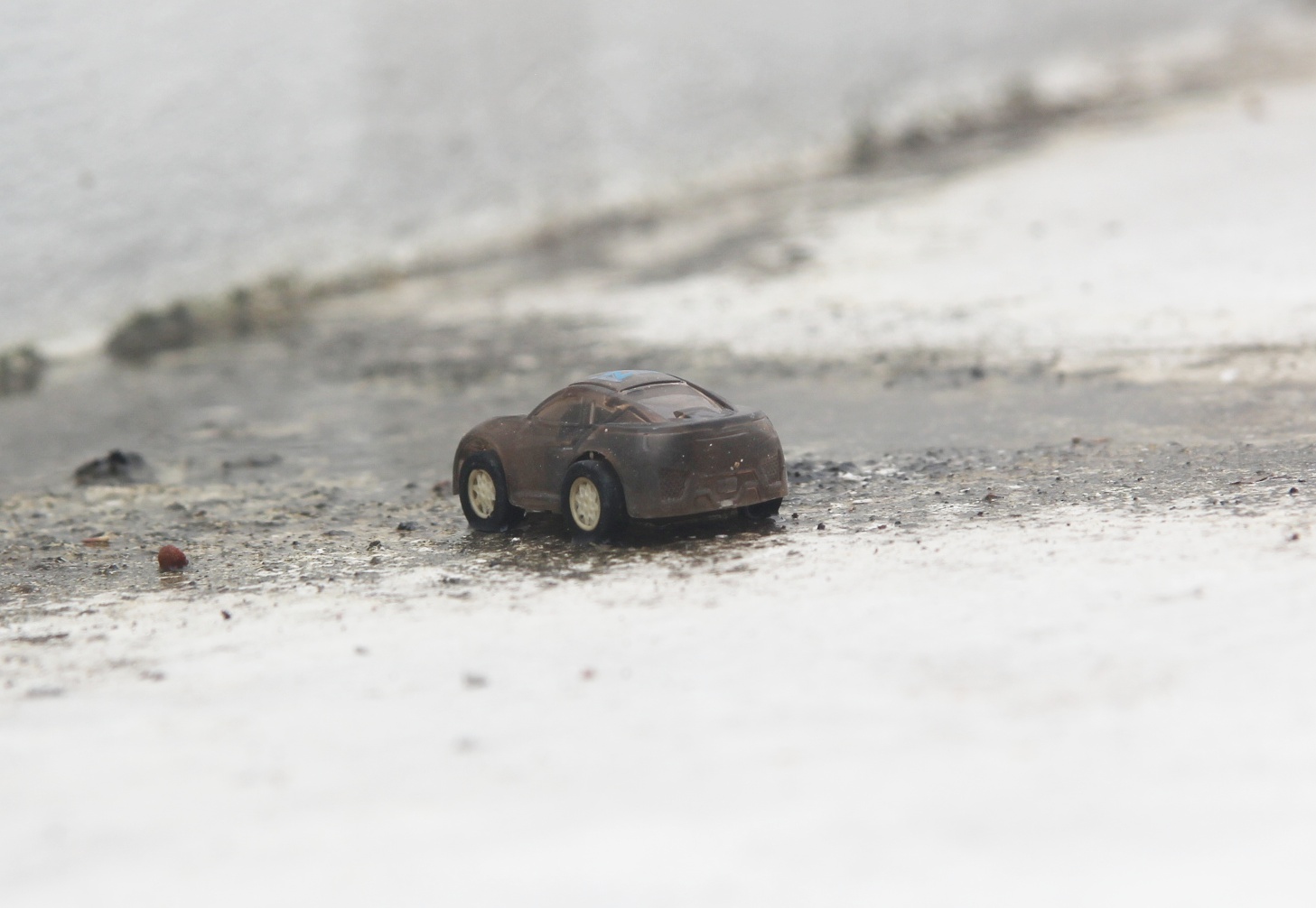 Chiếc ô tô đồ chơi ai đó đặt lên ngôi mộ chung.