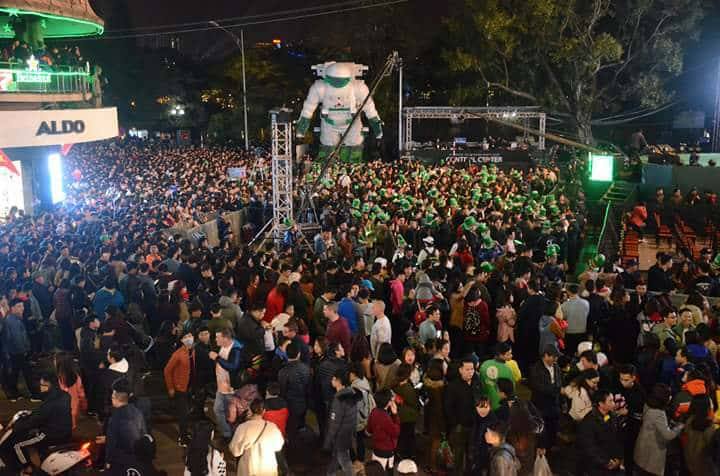 Tại Hà Nội, dù không bắn pháo hoa nhưng người dân vẫn kéo nhau lên khu phố đi bộ dạo chơi. Quanh Quảng trường Cách mạng tháng 8, biển người đã vây kín sân khấu ca nhạc. Khắp các lối đi đều ken đặc người, ai cũng háo hức chờ đợi khoảnh khắc Countdown đếm ngược.