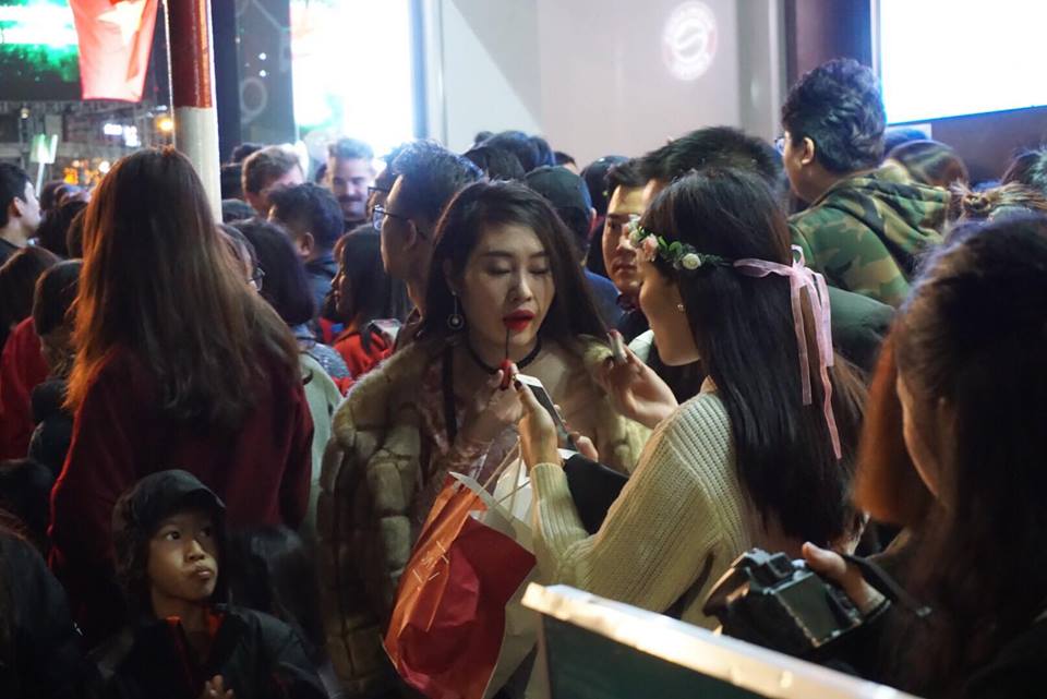 Các cô gái chuẩn tô thêm son phấn để trông xinh đẹp hơn khi dạo phố đón năm mới.