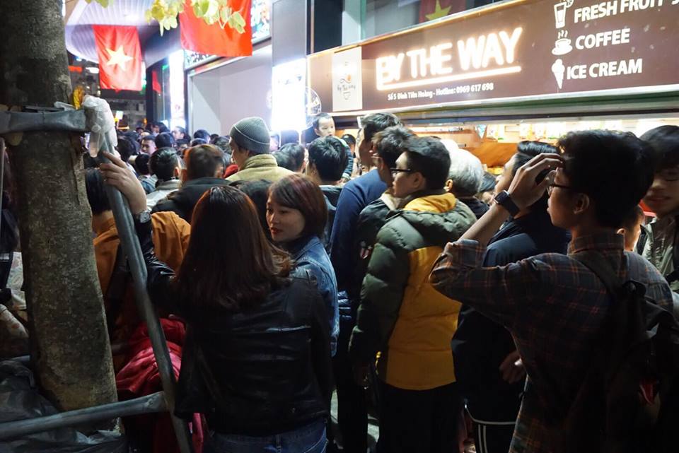 Dù đến 12h đêm, khoảnh khắc chuyển giao sang năm 2018 mới chính thức bắt đầu nhưng ngay từ đầu giờ tối, rất nhiều người đã kéo về sân khấu Countdown để chọn cho mình vị trí đẹp nhất. Chưa kịp ăn tối nên họ đã chọn Tạ Hiện - Lương Ngọc Quyến làm điểm dừng chân. Vì quá đông khách nên nhiều cửa hàng đã phải từ chối phục vụ vì quá tải. Các lối đi ở đây quá đông nên ai nấy đều phải chú ý nhích từng bước.