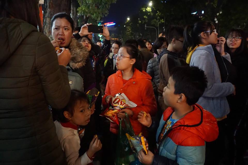 21h, tức còn 3h nữa sẽ chính thức bước sang năm mới, lúc này phố đi bộ tiếp tục chật như nêm. Mọi lối đi tưởng như không còn một khoảng trống.