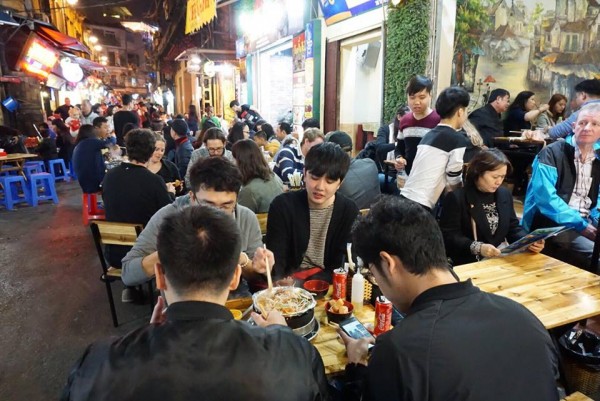 Trong khi đó, chị Hoài Thanh (Hoàn Kiếm, Hà Nội) tâm sự: “Tối nay mình cùng gia đình đi chơi sớm nên lên Tạ Hiện ăn nướng, uống bia, không ngờ quán nào quán nấy đều đông phát sợ. Ăn xong mình cũng không dám ngồi lâu như mọi khi, phải rời đi để cho người khác còn có chỗ ngồi”.
