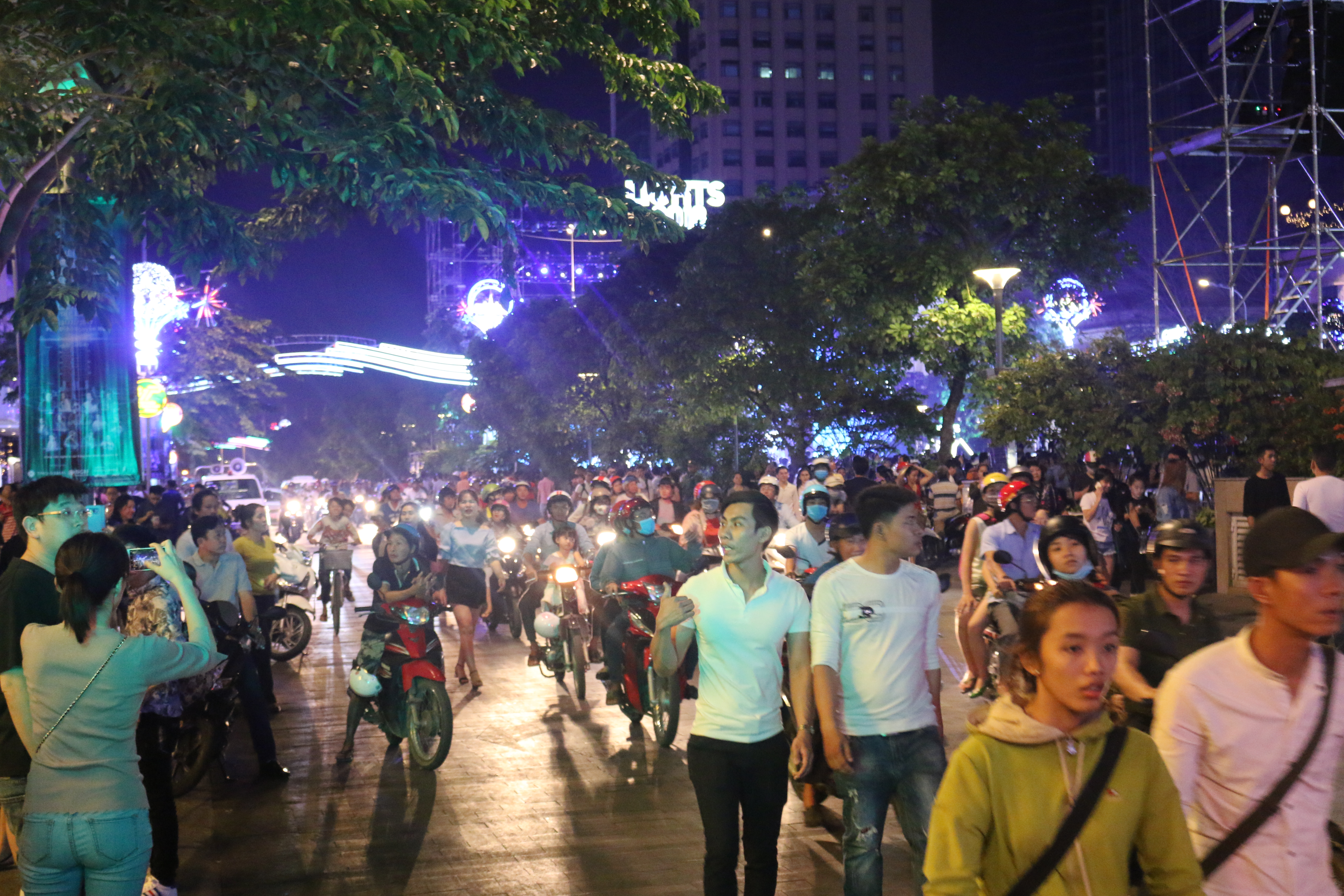 Tuy nhiên, thay vì đổ về các tụ điểm kể trên, từ 19h, nhiều người đã dồn về phố đi bộ Nguyễn Huệ, đón chờ chương trình đếm ngược trong thời khắc chuyển giao giữa năm cũ và năm mới (Countdown) diễn ra tại đây.