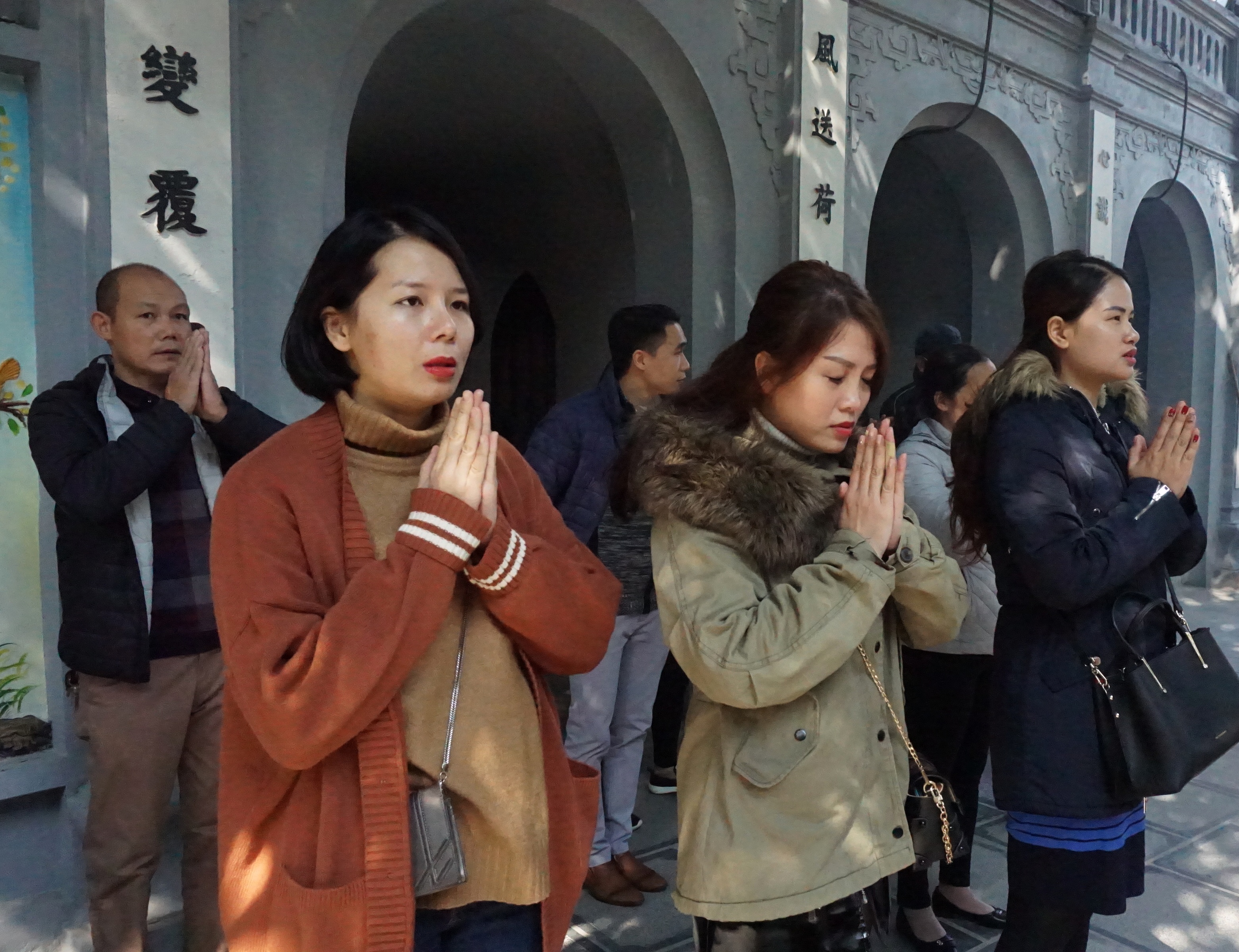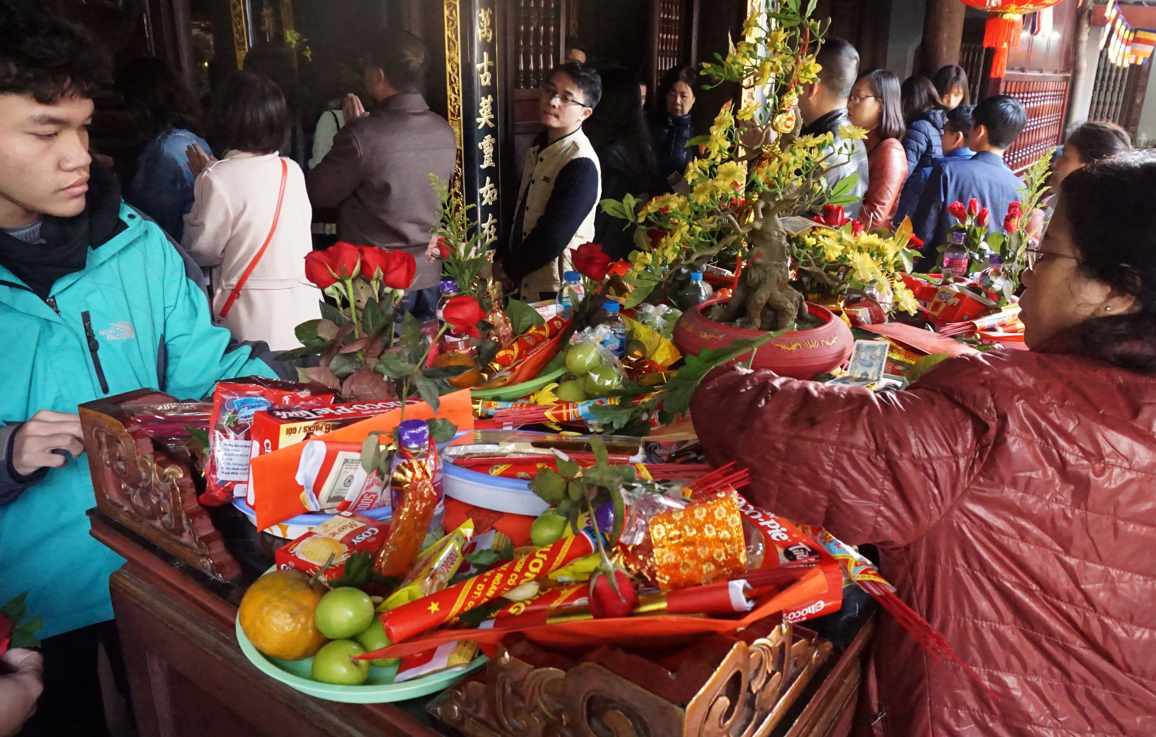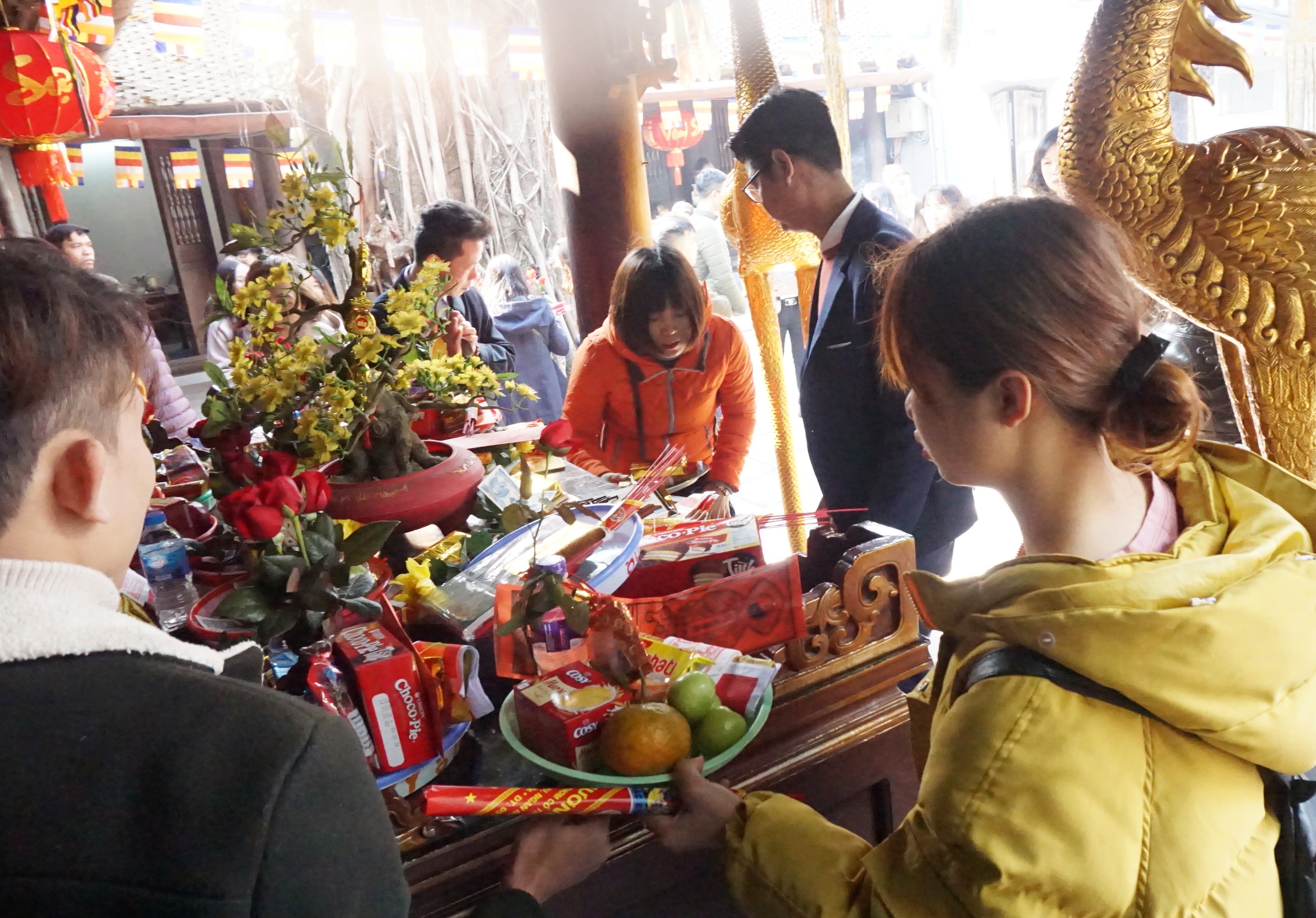 Sáng 30/1 (mùng 6 Tết), rất đông người dân, dân công sở đổ xô đến chùa chùa Hà (ở phường Dịch Vọng, quận Cầu Giấy, Hà Nội) cầu một năm bình an và tình duyên. Theo quan sát khắp các lối vào đền luôn tấp nập người ra vào. Nhiều người cũng chuẩn bị đầy mâm lễ để cầu may mắn, tình duyên, con cái…