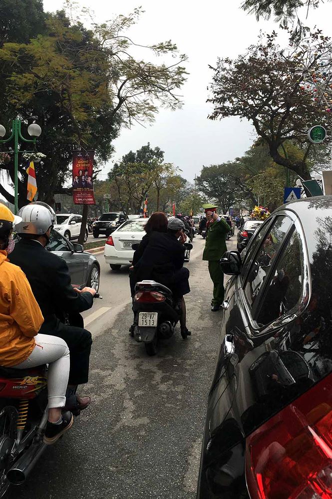 Lực lượng công an khu vực được tăng cường phân làn giao thông.