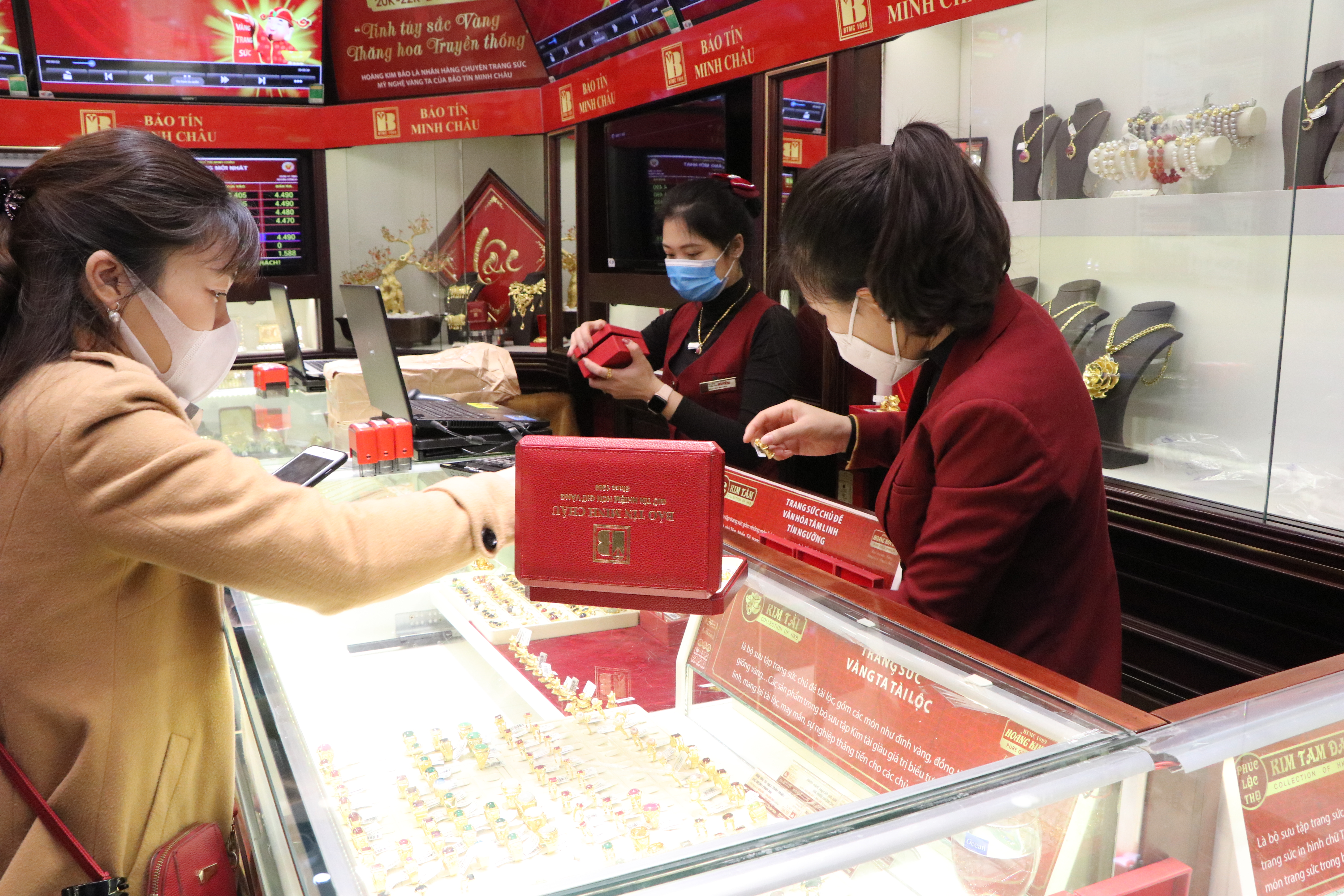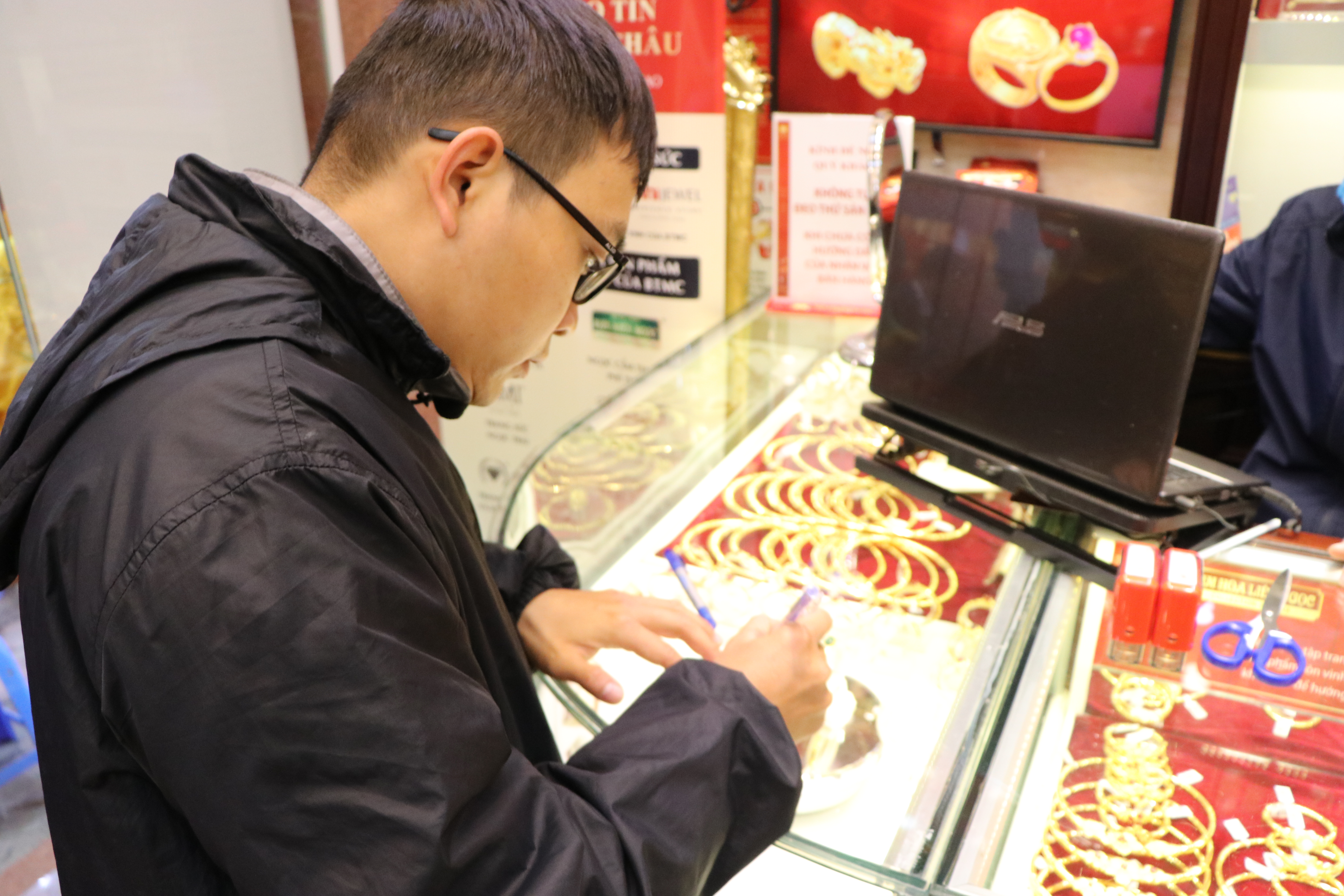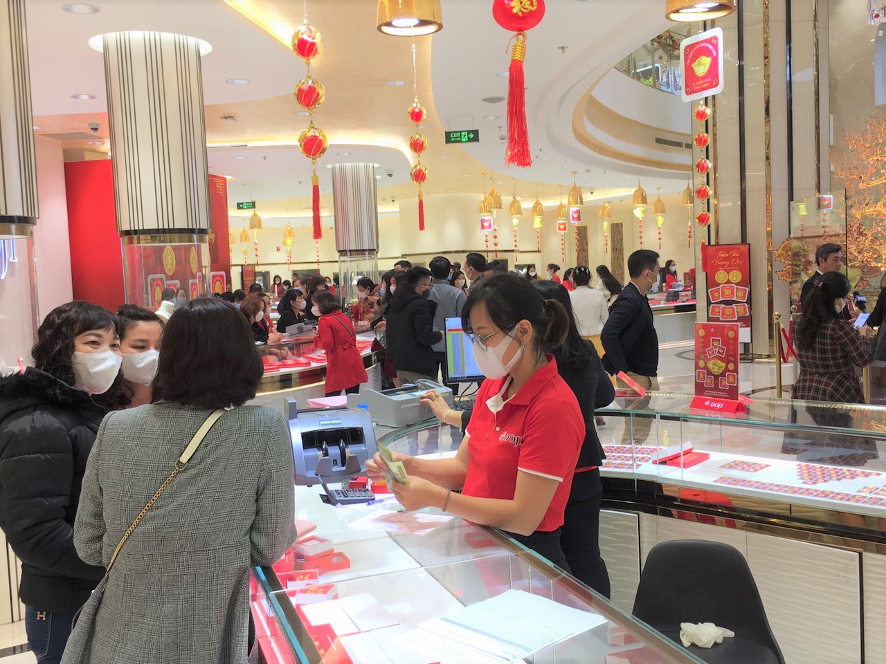 Người người tấp nập vào tiệm vàng. Mặc dù năm nay do ảnh hưởng của đợt dịch virus corona nhưng lượng mua vàng vẫn đông hơn so với ngày thường.