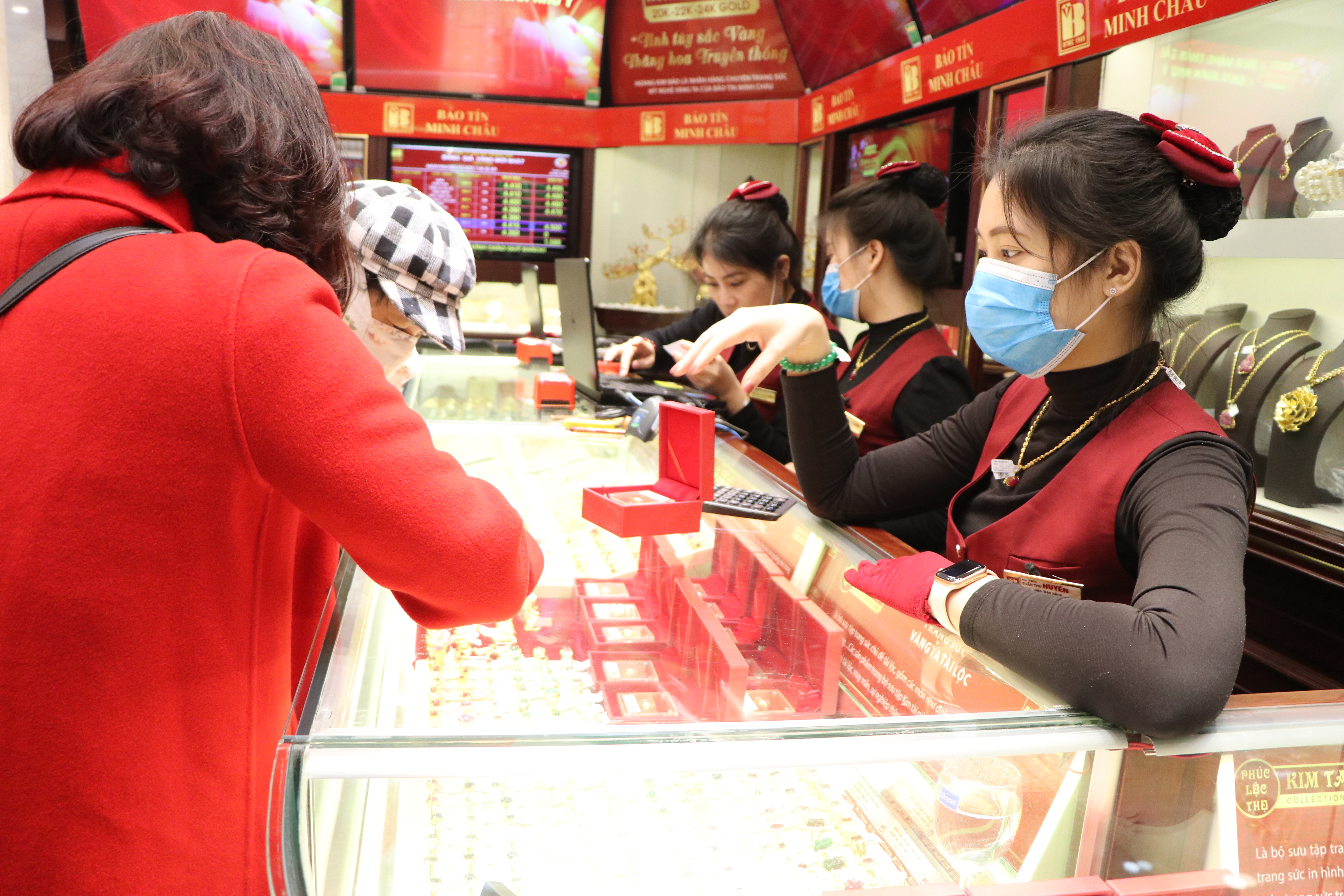 Tại tiệm vàng Bảo Tín Minh Châu cũng có rất đông người đến mua vàng.