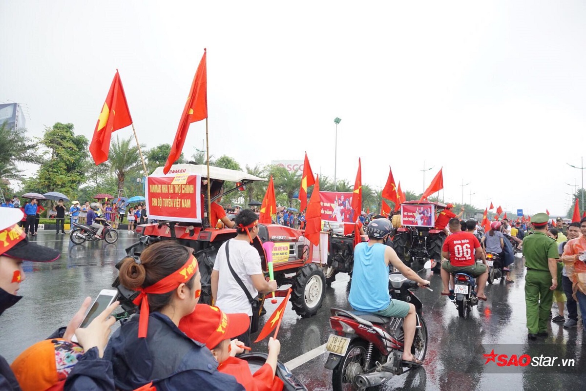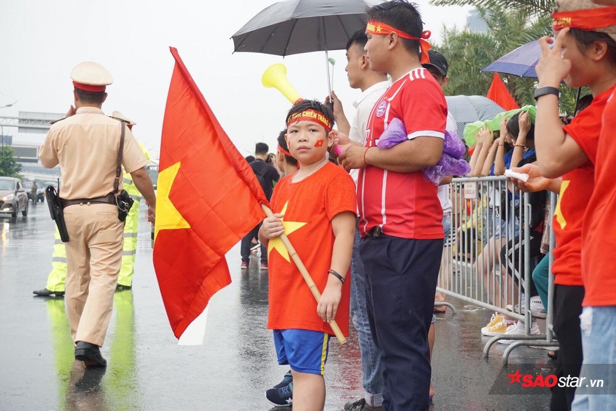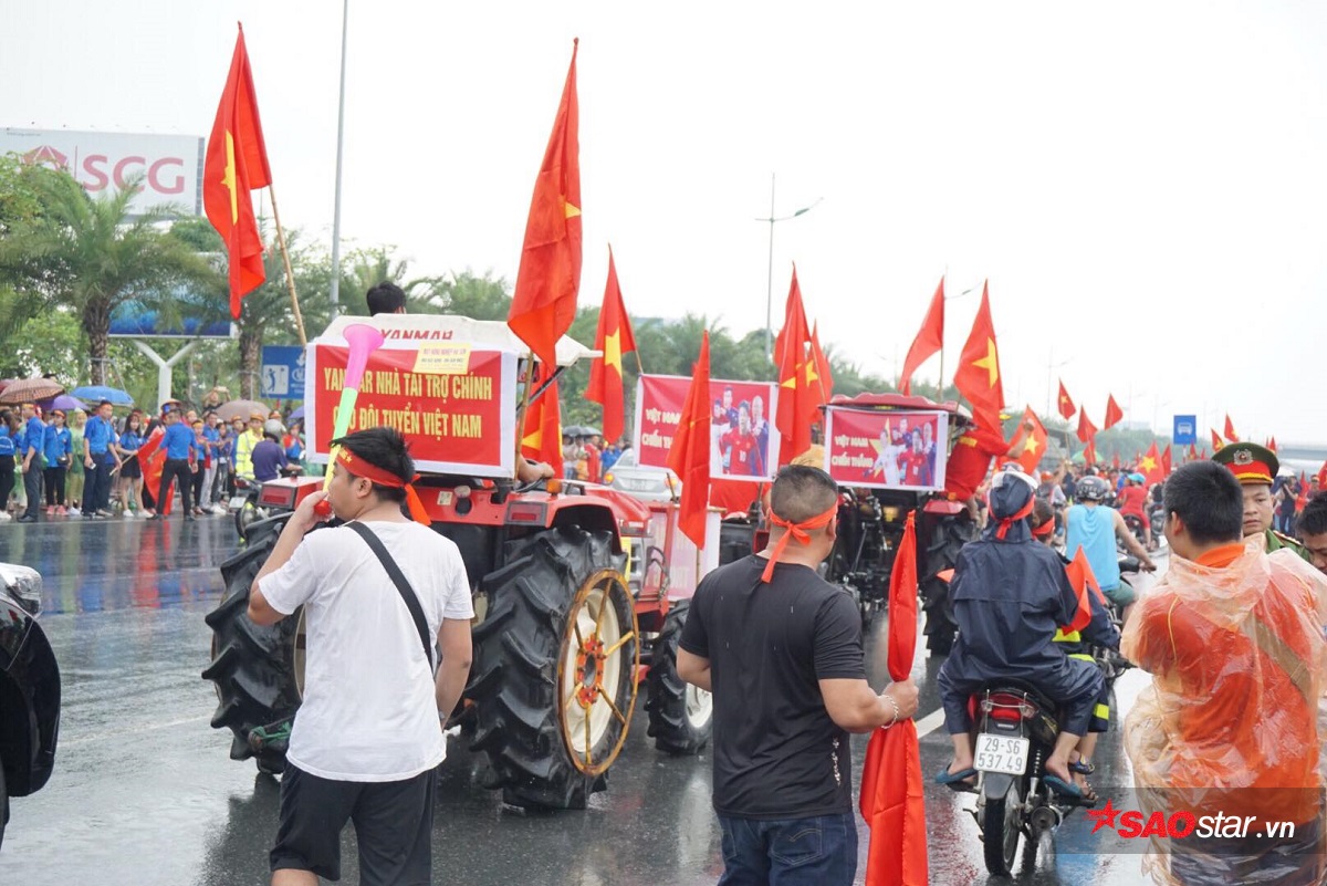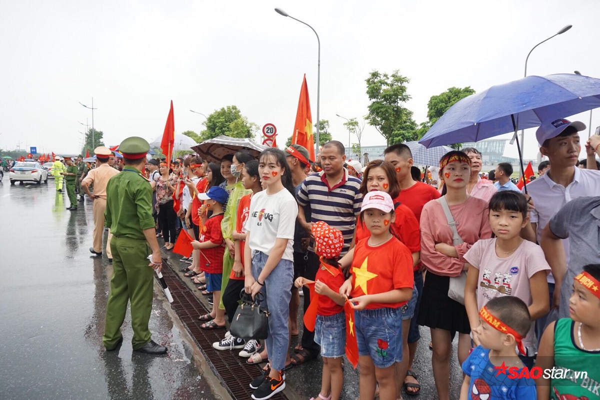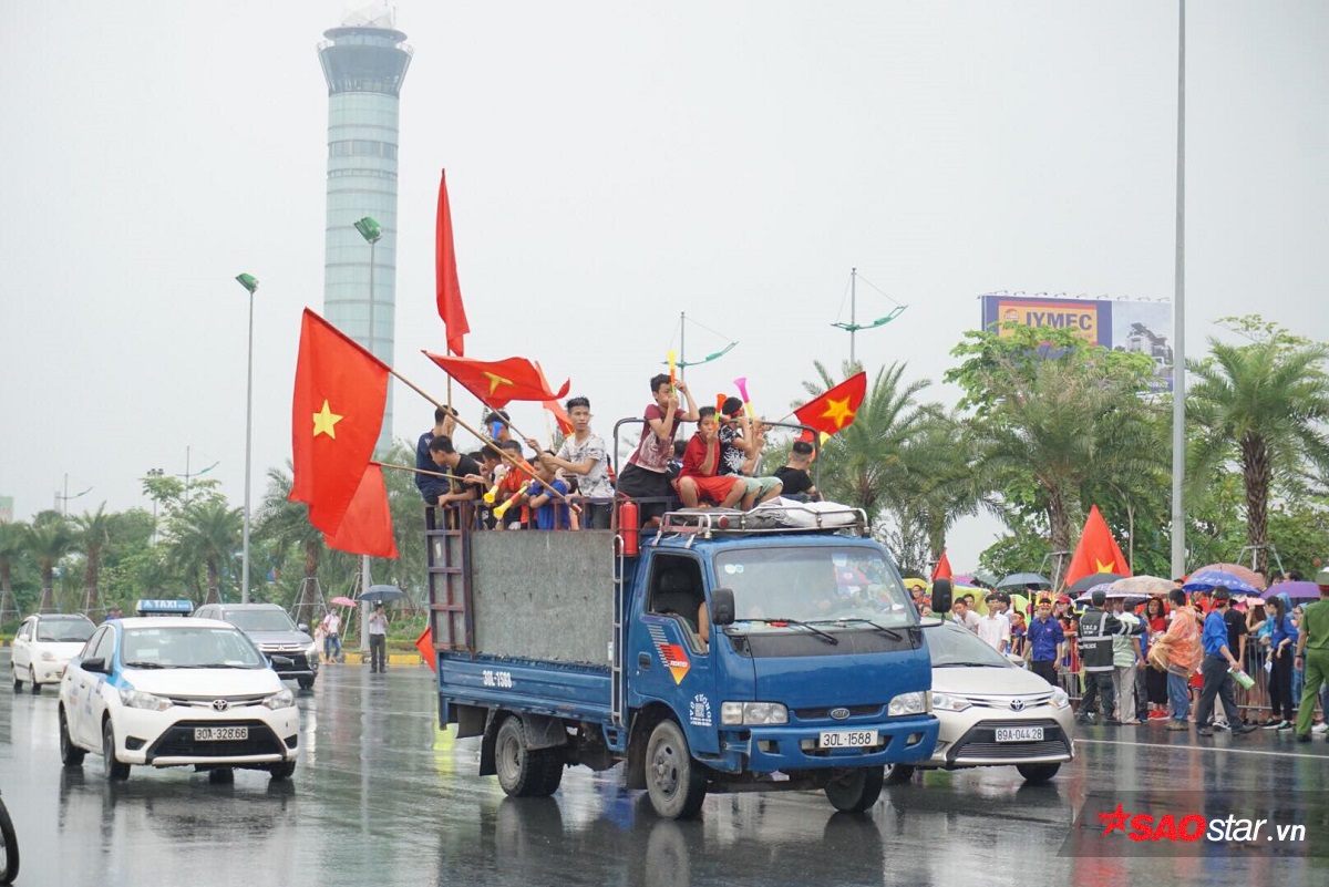 Hàng nghìn cảnh sát, sinh viên tình nguyện đã có mặt chốt chặn các ngả đường tránh ùn tắc. Tuy nhiên lượng người đổ về mỗi lúc một đông, đã xảy ra tình trạng ùn ứ nhẹ qua khu vực trước sân bay Nội Bài. Trong đó, có nhiều CĐV nhiệt thành còn chấp nhận đội mưa, lái máy cày đến tận nơi để chờ đón các chân sút vàng.