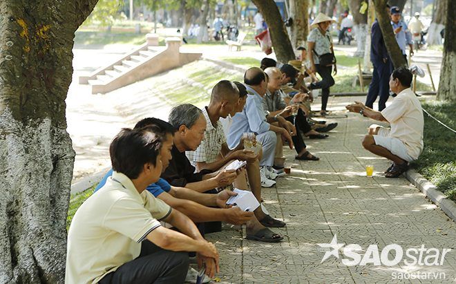 Nhiệt độ tăng cao, các cụ già tìm tới bóng mát dưới những gốc cây trong công viên để tránh đi cái nắng dữ dội.