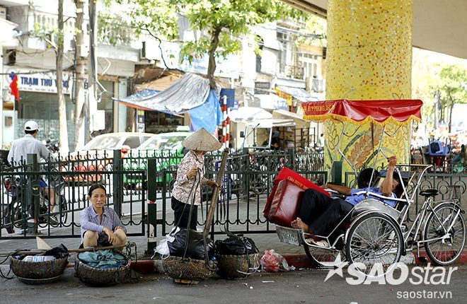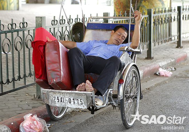 Giấc ngủ trưa mệt mỏi của bác lái xích lô trong cái nóng oi bức.