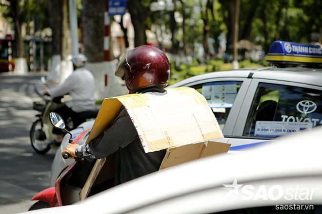 Một trong những kiểu tránh nắng độc đáo của người dân để “sống sót” khi đi trên đường.