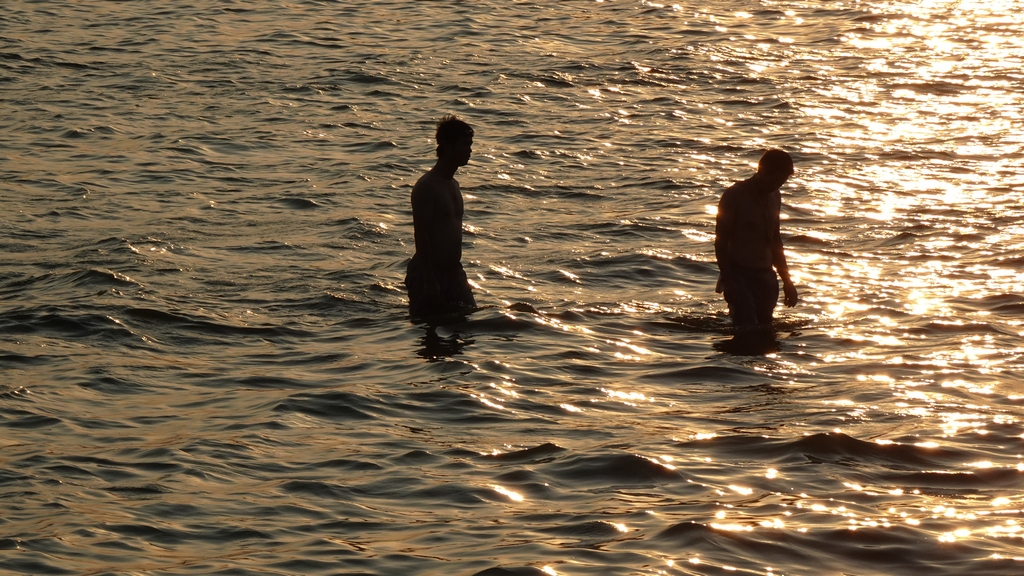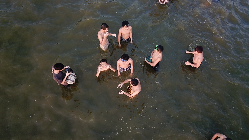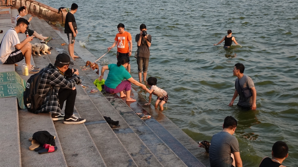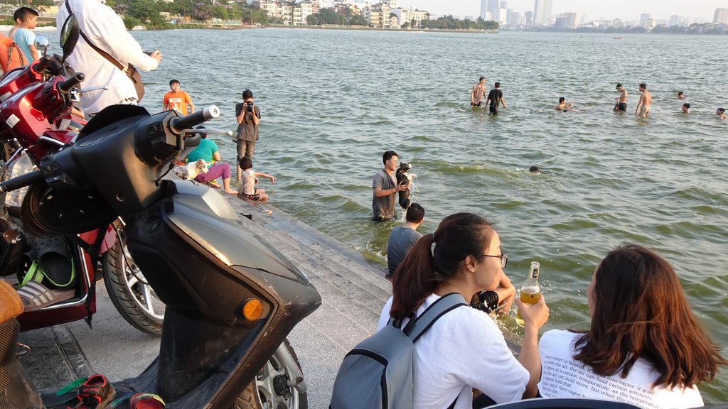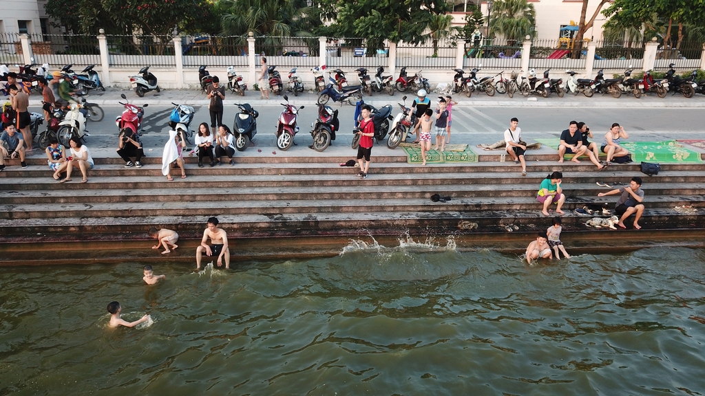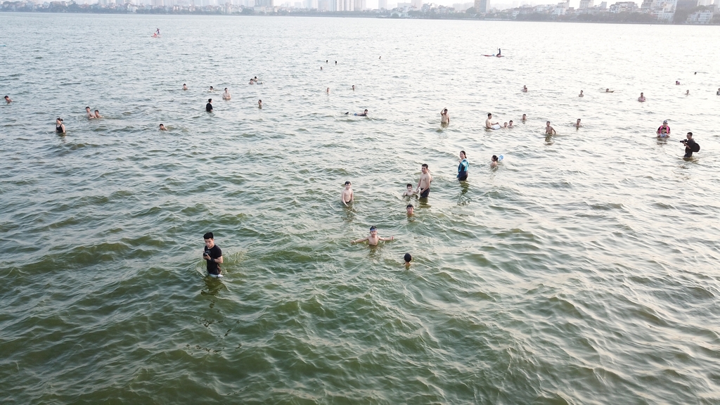 Nhóm thanh niên này cũng tranh thủ chiều mát ra Hồ Tây tắm giải nhiệt.