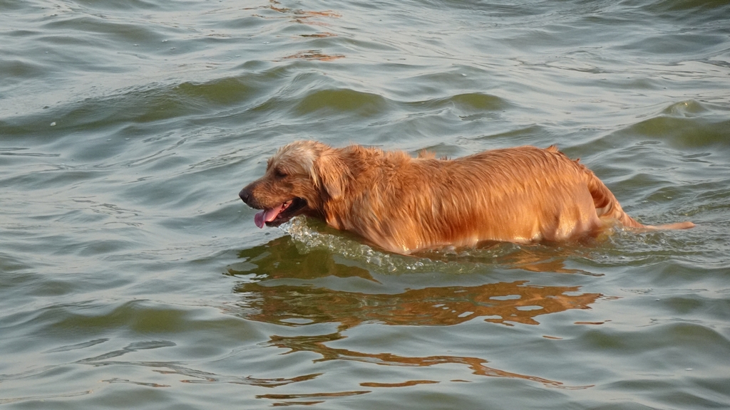 Các chú chó cũng không sợ sệt dòng nước.