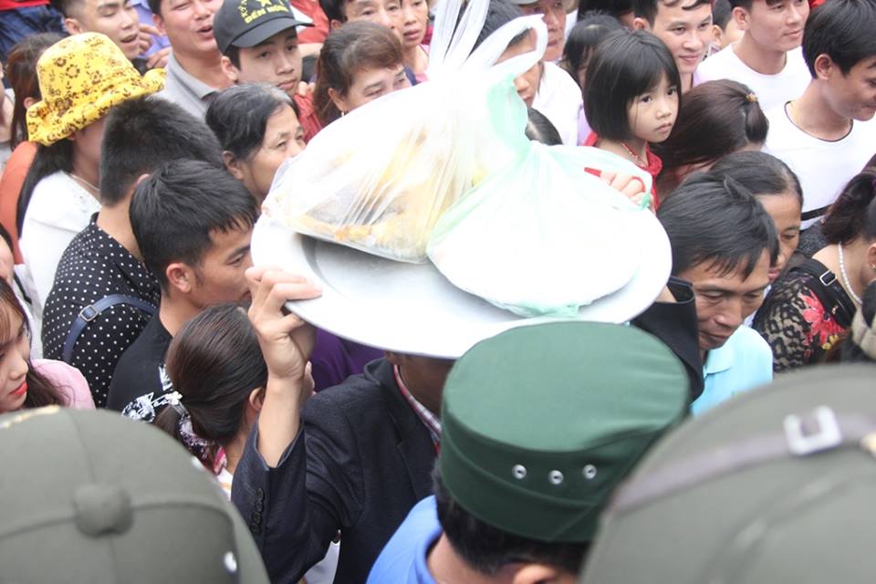Nhiều du khách mang lễ vật cồng kềnh theo người để dâng lễ
