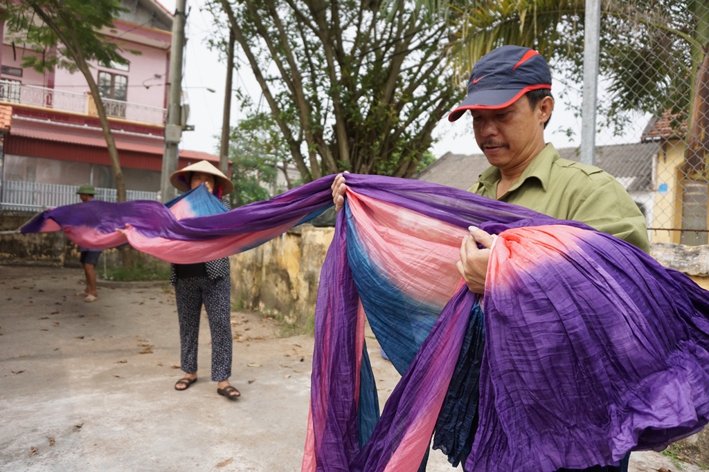 Trao đổi với chúng tôi, ông Nguyễn Tiến Quảng - Chủ tịch Hiệp hội sản xuất và kinh doanh lụa Nha Xá cho biết, hiệp hội không quản lý nguồn ra. Những sản phẩm tơ lụa làm ra đều do các cá nhân trong làng tìm đối tác.