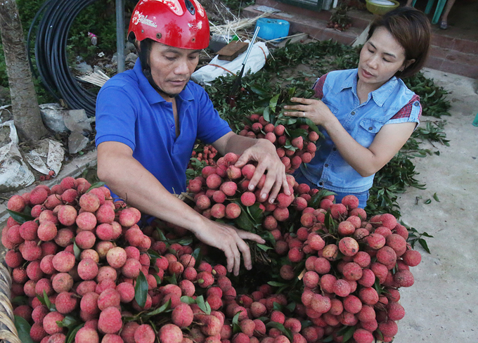 “Vải chín rộ nếu không thu hái kịp sẽ bị thối và rụng. Gia đình chỉ có một người hái, một người vặt lá và một người bó thành chùm. Vải năm nay giá rẻ, nếu thuê nhân công thu hoạch thì mỗi ngày 200.000 đồng tiền công, tính ra không có lãi nên chúng tôi phải nhờ họ hàng đến thu hái hộ”, chị Lại Thị Toan nói.