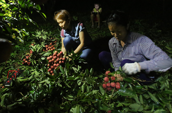 Gần hai tuần nay, người dân các xã của huyện Lục Ngan (Bắc Giang) tập trung thu hoạch vải thiều chính vụ. Họ dậy từ 2h đêm, chong đèn hái vải để kịp đưa xuống chợ bán trong buổi sáng.