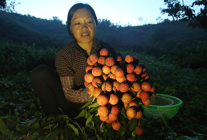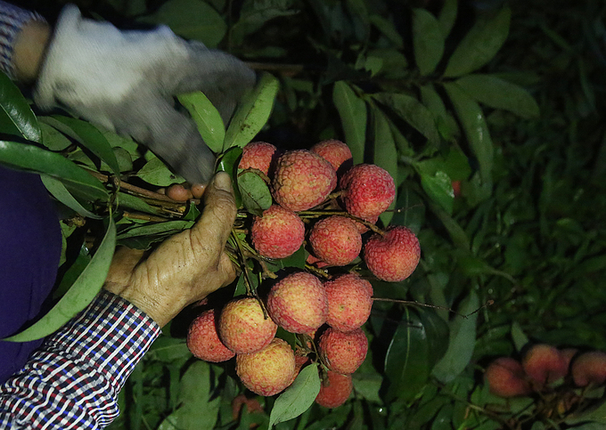 Gia đình anh Nông Văn Thứ (xã Cấm Sơn, Lục Ngan, Bắc Giang) có 200 gốc vải gần 20 năm tuổi. “Năm nay vải được mùa, quả vải ra sai, đẹp mã hơn những năm trước. Vải được hái lúc nửa đêm về sáng thì quả sẽ căng mọng, mang ra chợ bán được giá hơn”. anh cho biết.