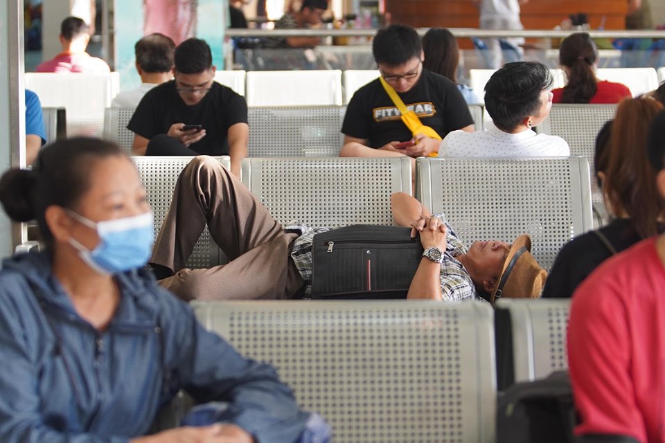 Một số người mệt nhoài phải chờ đợi xe tại bến xe Giáp Bát.