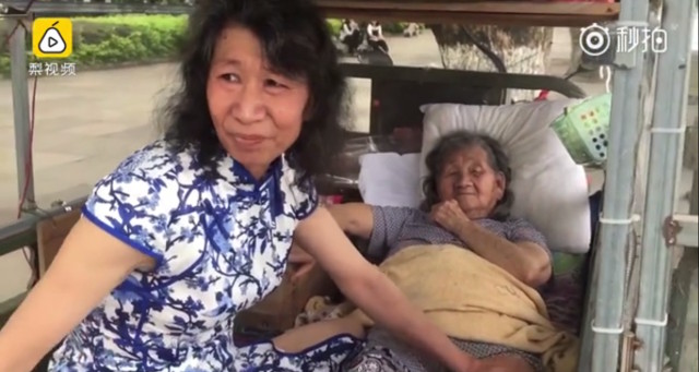 Xuất hiện trong video do kênh Pear thực hiện là hình ảnh của người phụ nữ trung niên mặc bộ đồ sườn xám màu trắng hoa xanh đang đút thức ăn và bóp chân cho người mẹ già của mình phía sau chiếc xe 3 bánh trên một con phố ở Thượng Hải. Tuy nhiên khi lại gần, người ta phát hiện hóa ra người phụ nữ này lại là một người đàn ông chính hiệu.