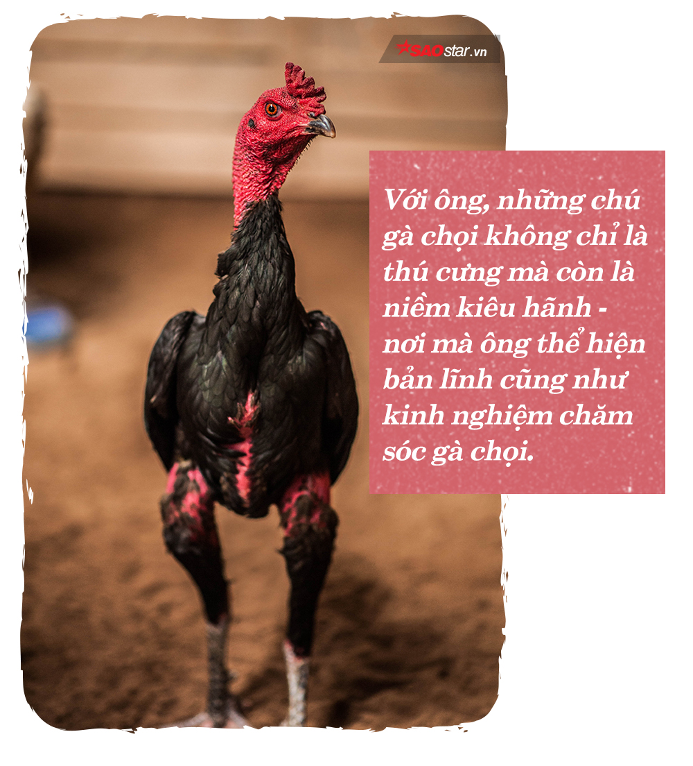 Nghề nuôi gà chọi tuy không thu lợi nhiều về kinh tế nhưng có giá trị rất cao về tinh thần. Ông kể mình làm rất nhiều việc, từ lái xe Bắc - Nam đến sửa sang xe Vespa cổ để kiếm tiền… Công việc “ngập đầu” khiến ông cảm thấy áp lực, mệt mỏi nhưng hễ cứ nhìn thấy những chú gà chọi trên sới đấu, ông lại quên hết mọi muộn phiền. Nhiều khi đang làm việc cực nhọc, chỉ cần ra chăm sóc gà một chút, ông lại thấy tinh thần phấn chấn, hứng thú như ban đầu. Những chú gà chọi không chỉ là thú cưng mà còn là niềm kiêu hãnh - nơi mà ông thể hiện bản lĩnh cũng như kinh nghiệm chăm sóc gà chọi.