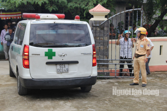 Xe y tế đưa thi thể 13 nạn nhân về nhà văn hóa thôn Lương Điền