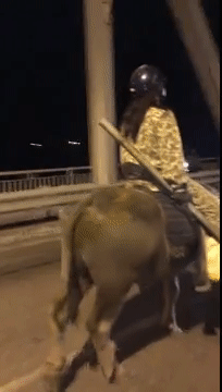 Theo hình ảnh đoạn clip ghi lại, người đàn ông chân đi ủng, đầu đội mũ bảo hiểm và tay cầm một cây gậy sắt dài. Người đàn ông này ngồi trên lưng con trâu và điều khiển để con trâu đi đúng hướng. Sự việc lạ lẫm này khiến bất kỳ người đi đường nào cũng phải ngước nhìn, thế nhưng, người đàn ông này dường như tỏ ra không quan tâm đến những ánh nhìn ấy.