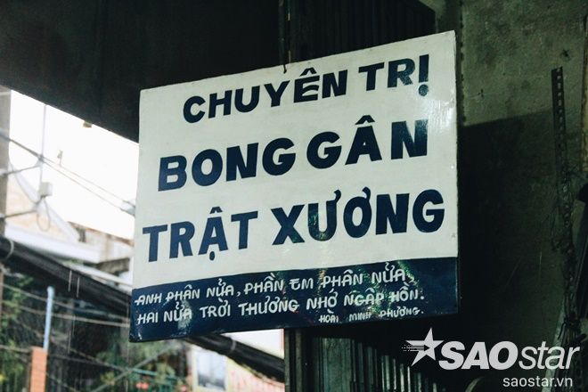 Ngoài công việc vẽ bảng hiệu ra ông còn kiêm thêm nghề trị bong gân, trật xương. Nhưng công việc tay trái đó ông vẫn không quên thêm vào 2 câu thơ rất tình : “Anh phân nửa, phần em phân nửa. Hai nửa trời thương nhớ ngập hồn.”
