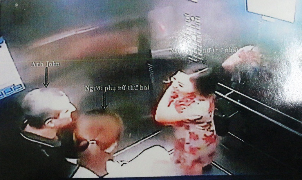 Camera khu chung cư ghi lại hình ảnh 2 người đàn bà lạ theo người đàn ông ngoại quốc về căn hộ chung cư. Ảnh: báo Vietnamnet