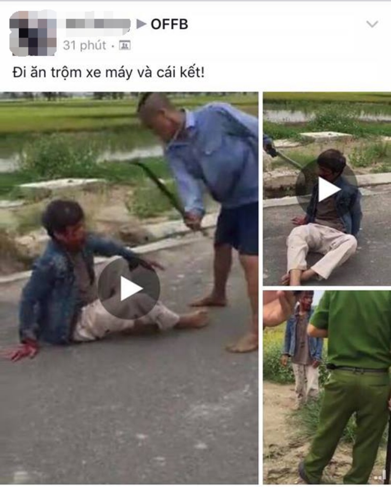 Tên trộm bị người dân dùng dao quắm đánh liên tiếp vào người, chân, tay.