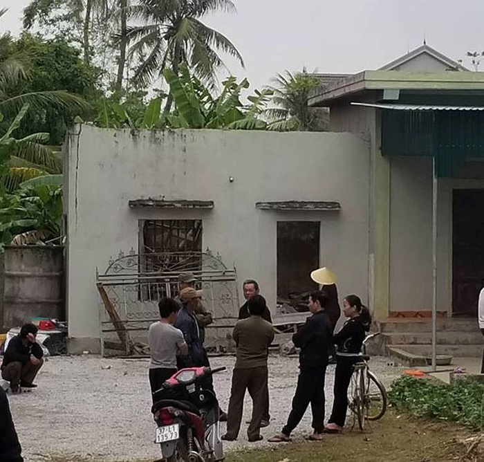 Thời điểm xảy ra sự việc, con đầu của anh Giáp đi học, ở nhà chỉ có vợ và con nhỏ. Khoảng 8h hơn, vợ con anh Giáp ra ngoài quét sân thì giật mình bởi tiếng nổ lớn. Lúc này, hàng xóm và người dân địa phương cũng chạy đến kiểm tra.