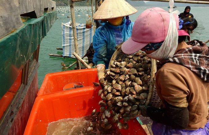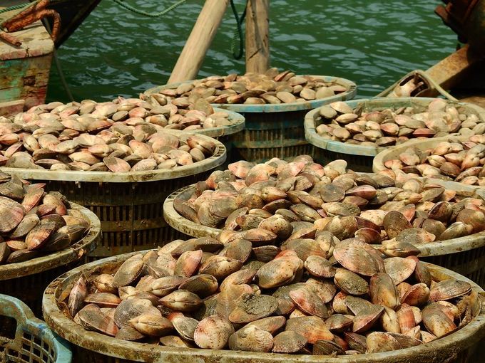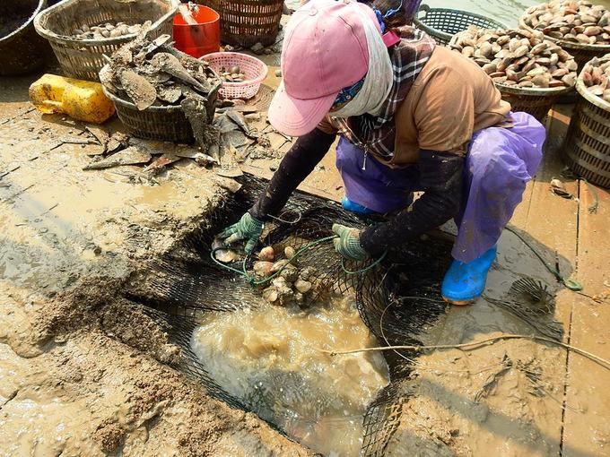 Ngao được phân loại và rửa sạch, sau đó chuyển vào Cảng Cái Rồng bán cho thương lái.