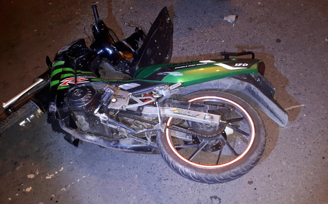 Cách thi thể nạn nhân khoảng 500m, người dân tiếp tục phát hiện chiếc xe máy Suzuki Sport mang BKS 59L1 - 50797 nằm giữa đường.