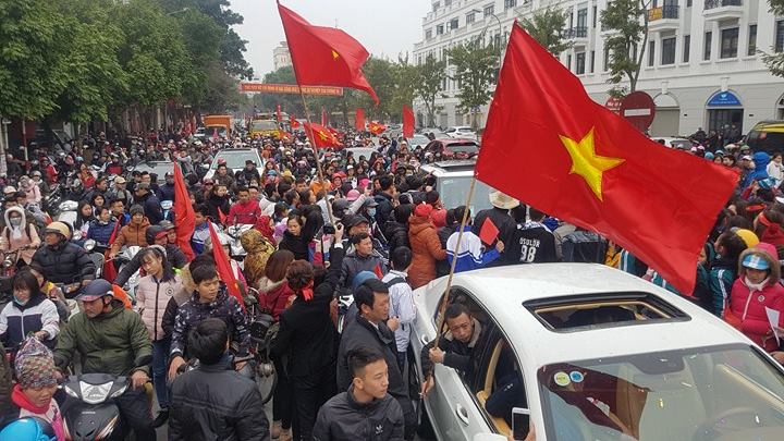 Tắc đường vì người dân đổ xô đi đón cầu thủ