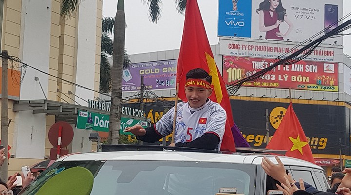 “Biển” người kéo đi đón chàng hậu vệ người Thái Bình.