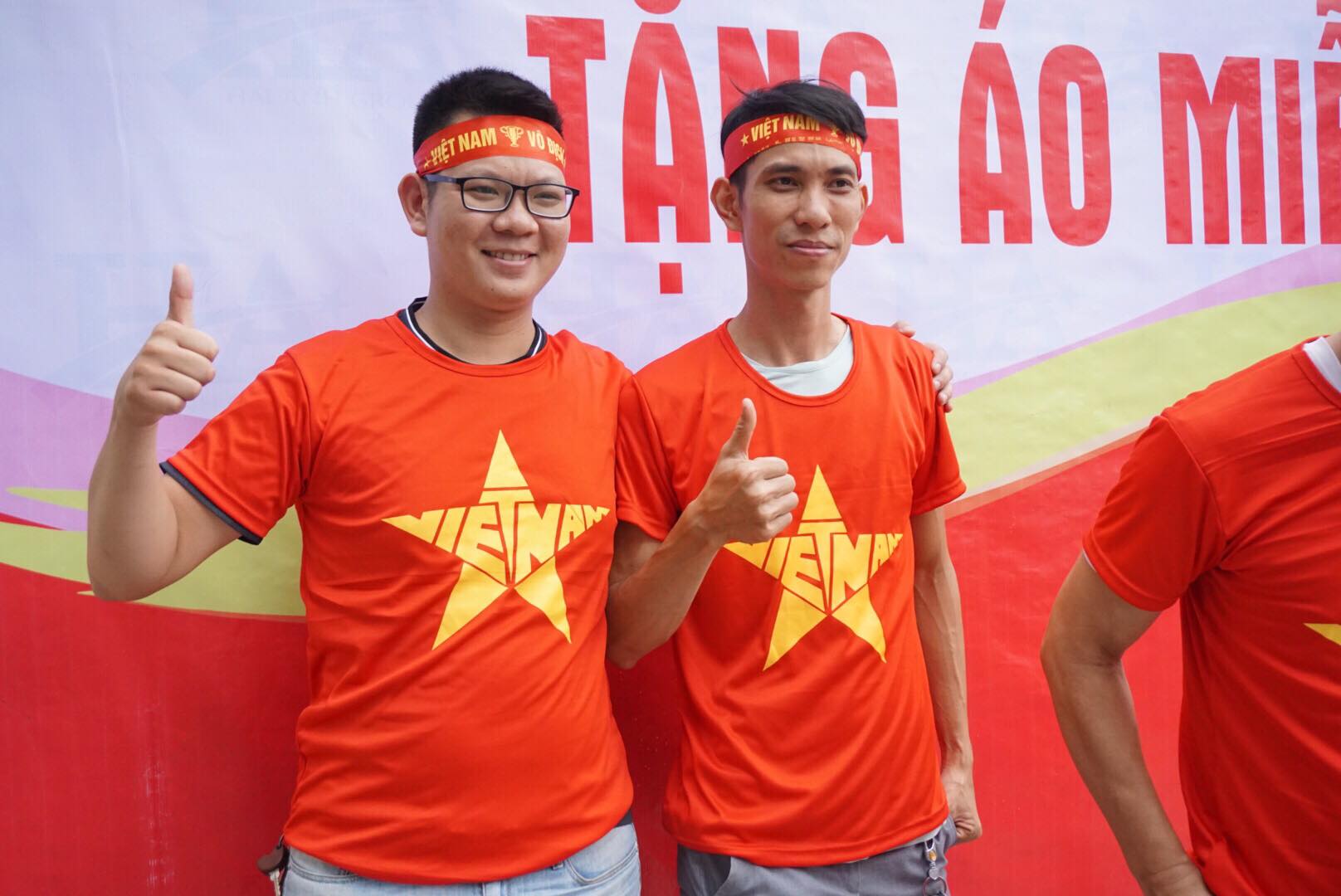 Bạn Hoàng Khánh Ly, đại diện công ty may đồng phục cho biết: “xuất phát từ tình cảm yêu mến đội tuyển Việt Nam, đặc biệt khi đội tuyển lọt vào vòng bán kết Asiad 2018, công ty đã quyết định cho toàn bộ nhân viên nghỉ việc đồng thời tặng người hâm mộ 1.000 chiếc áo miễn phí. Chúng tôi hy vọng sẽ lan tỏa tinh thần yêu bóng đá cổ vũ đội tuyển Việt Nam giành chiến thắng”.
