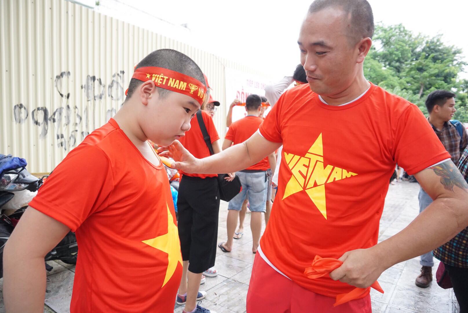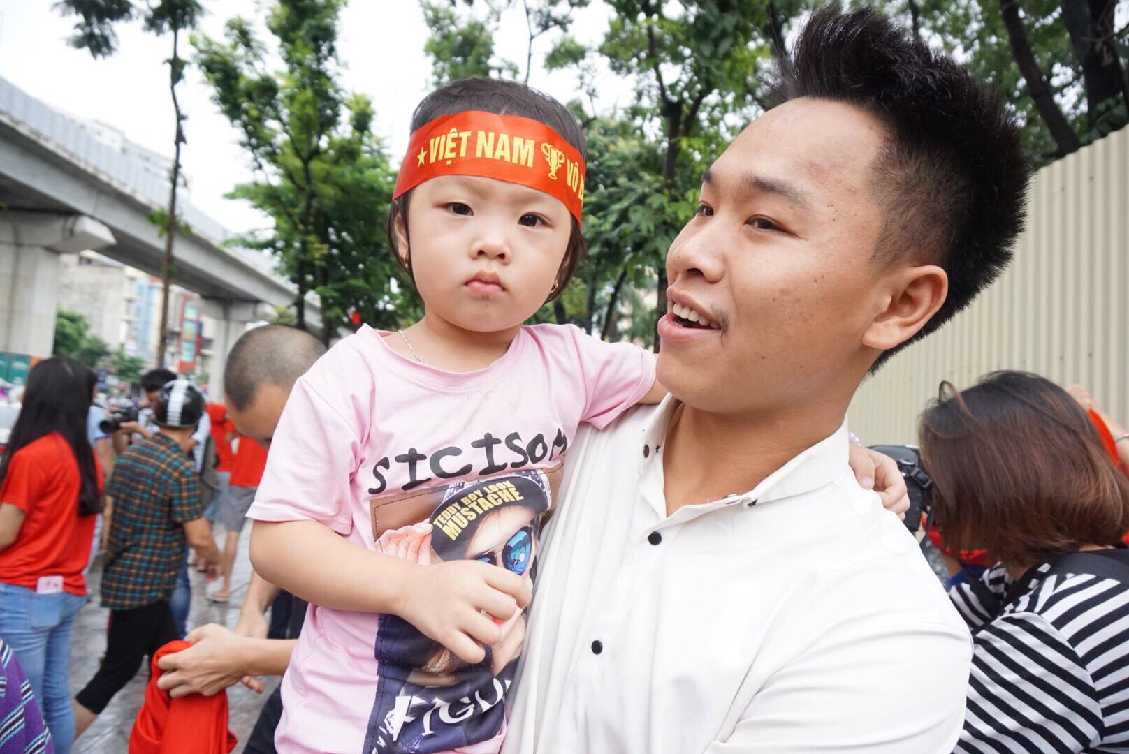 Nhiều em nhỏ được bố mẹ cho đi cổ vũ bóng đá.
