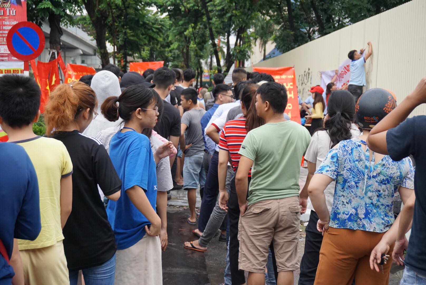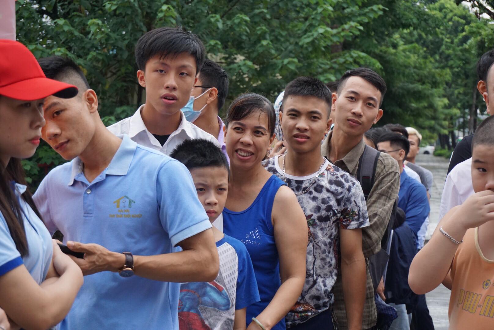 Hàng trăm người lần lượt xếp hàng chờ đợi tới lượt mình.